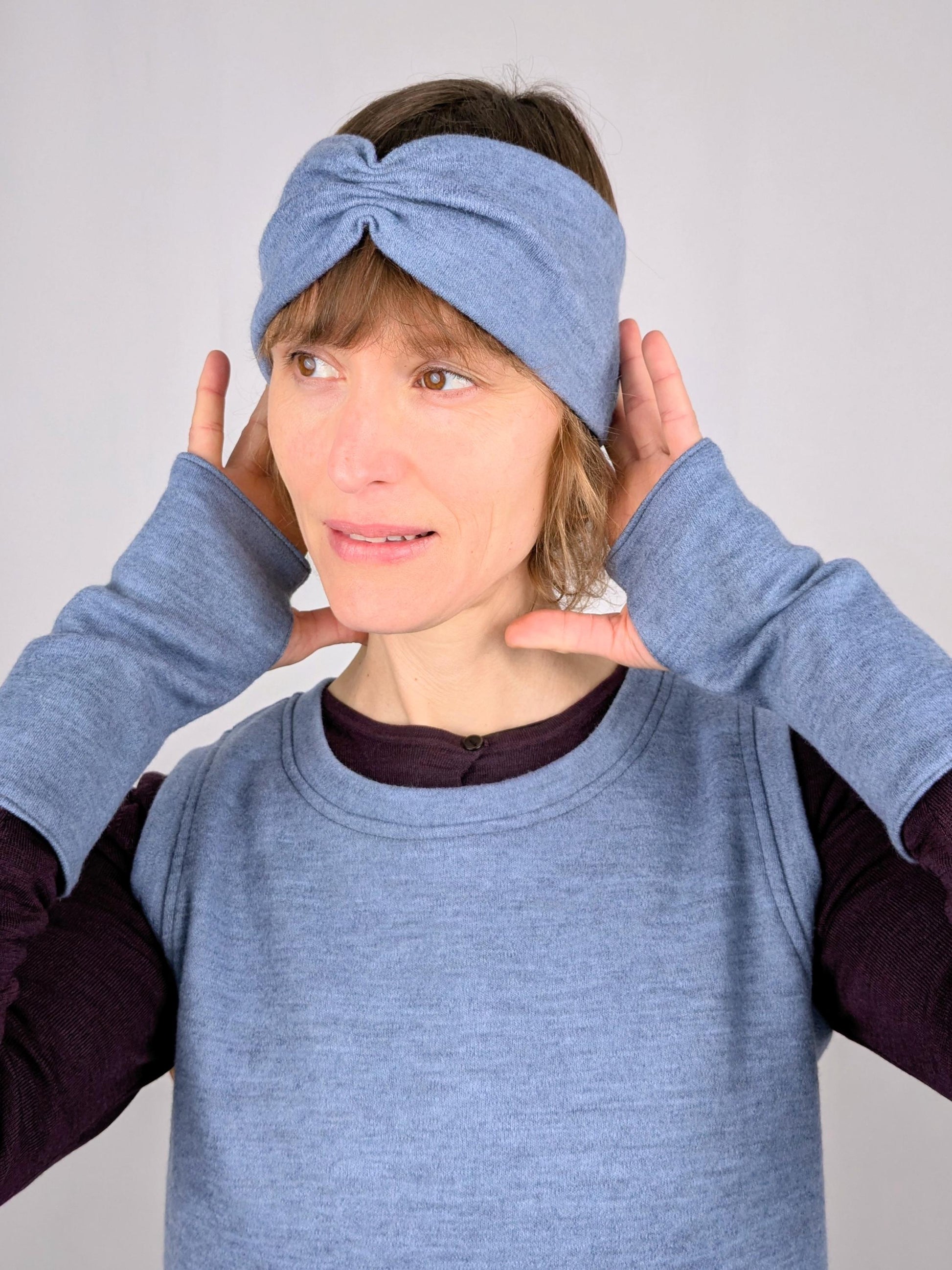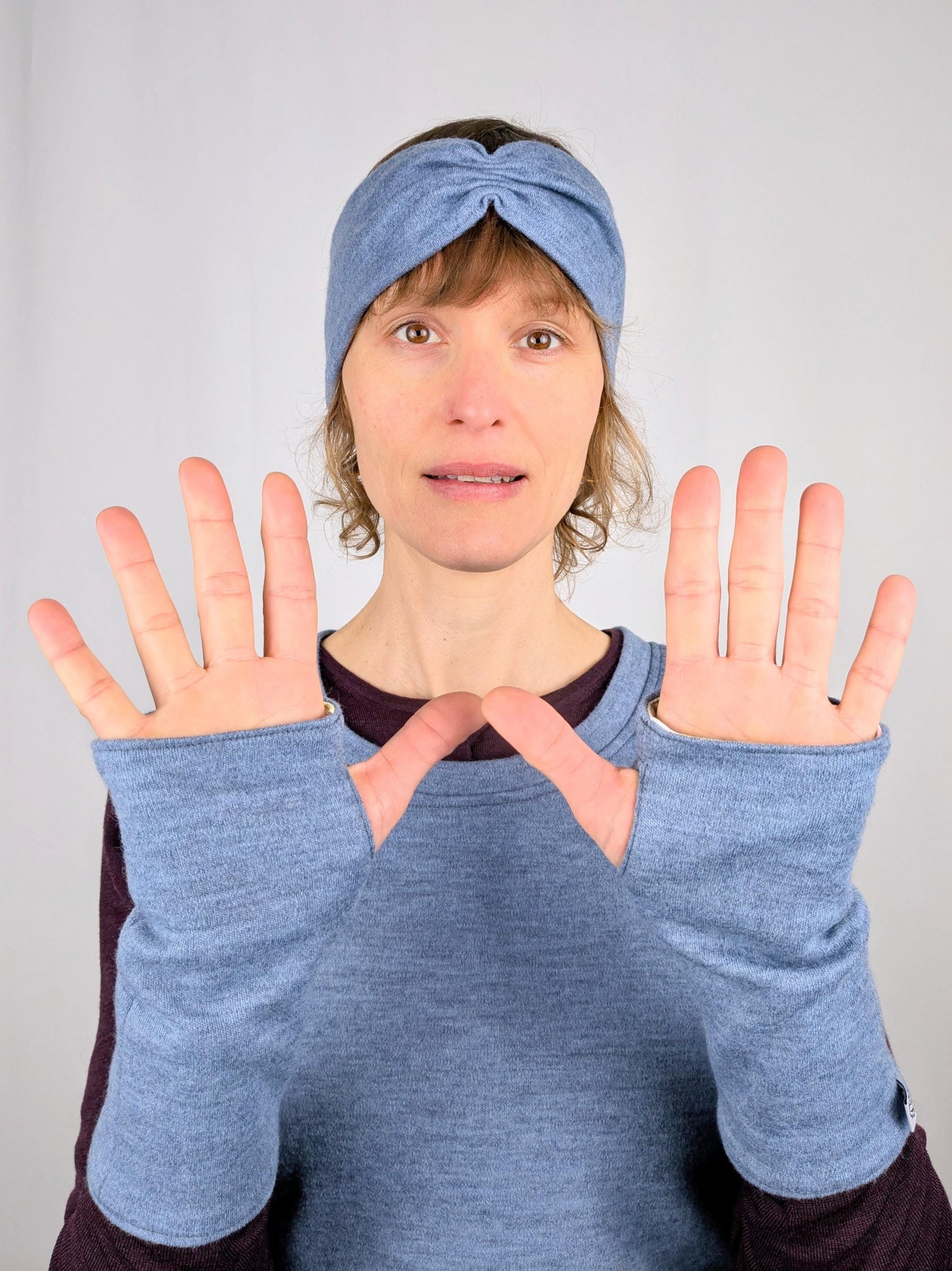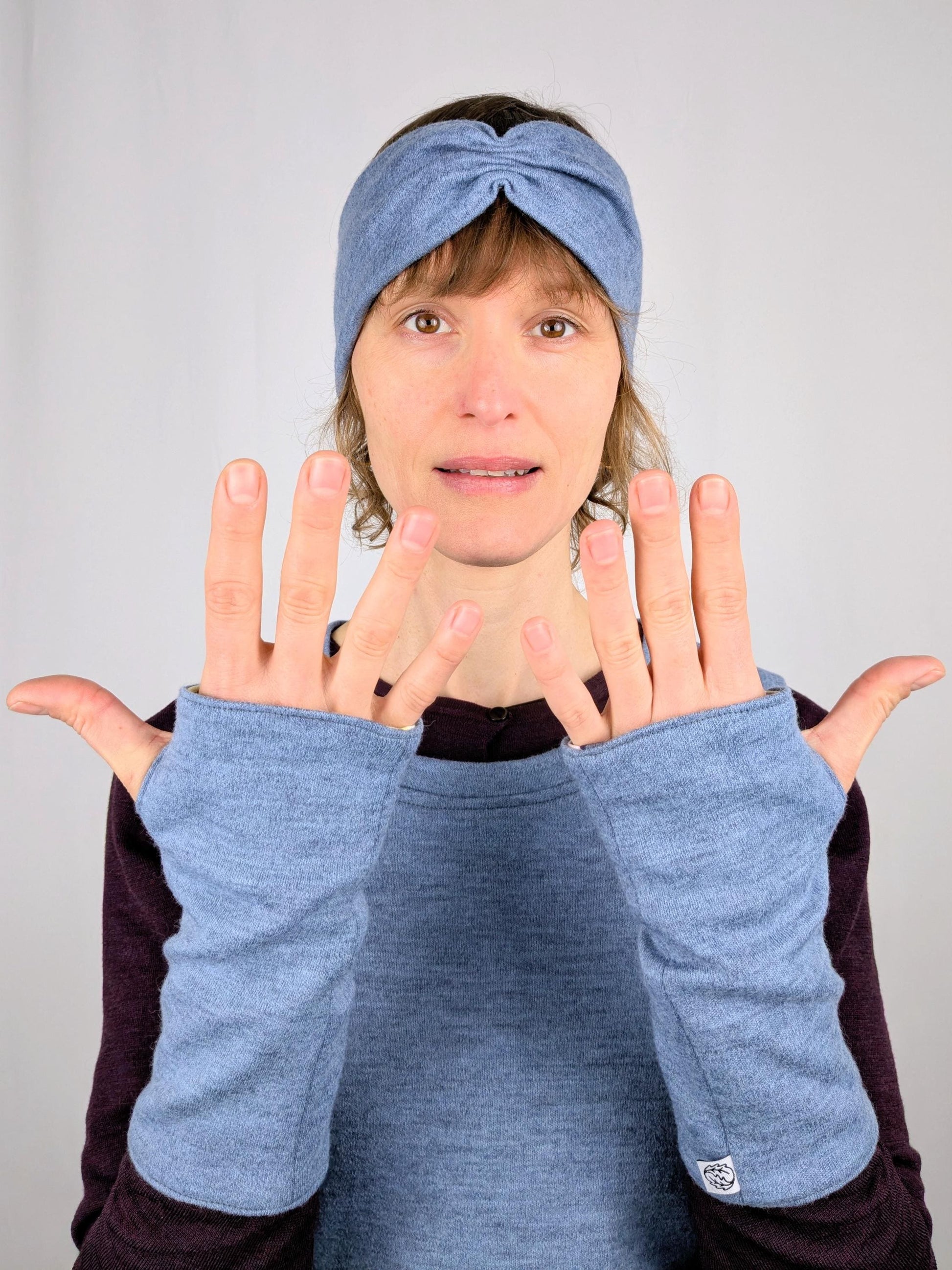 Entdecke die gemütliche Welt meiner handgefertigten Stulpen mit Daumenloch und Stirnbänder aus feinstem Wolljersey.