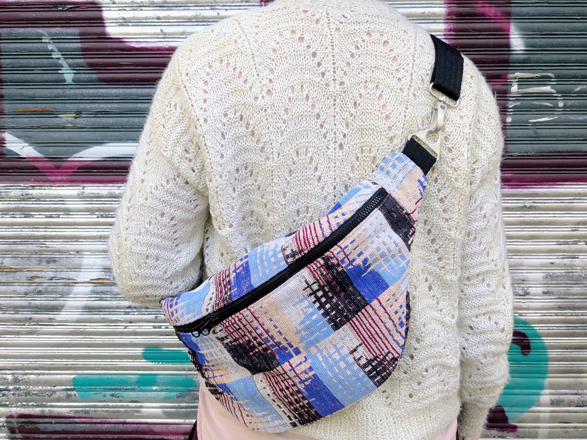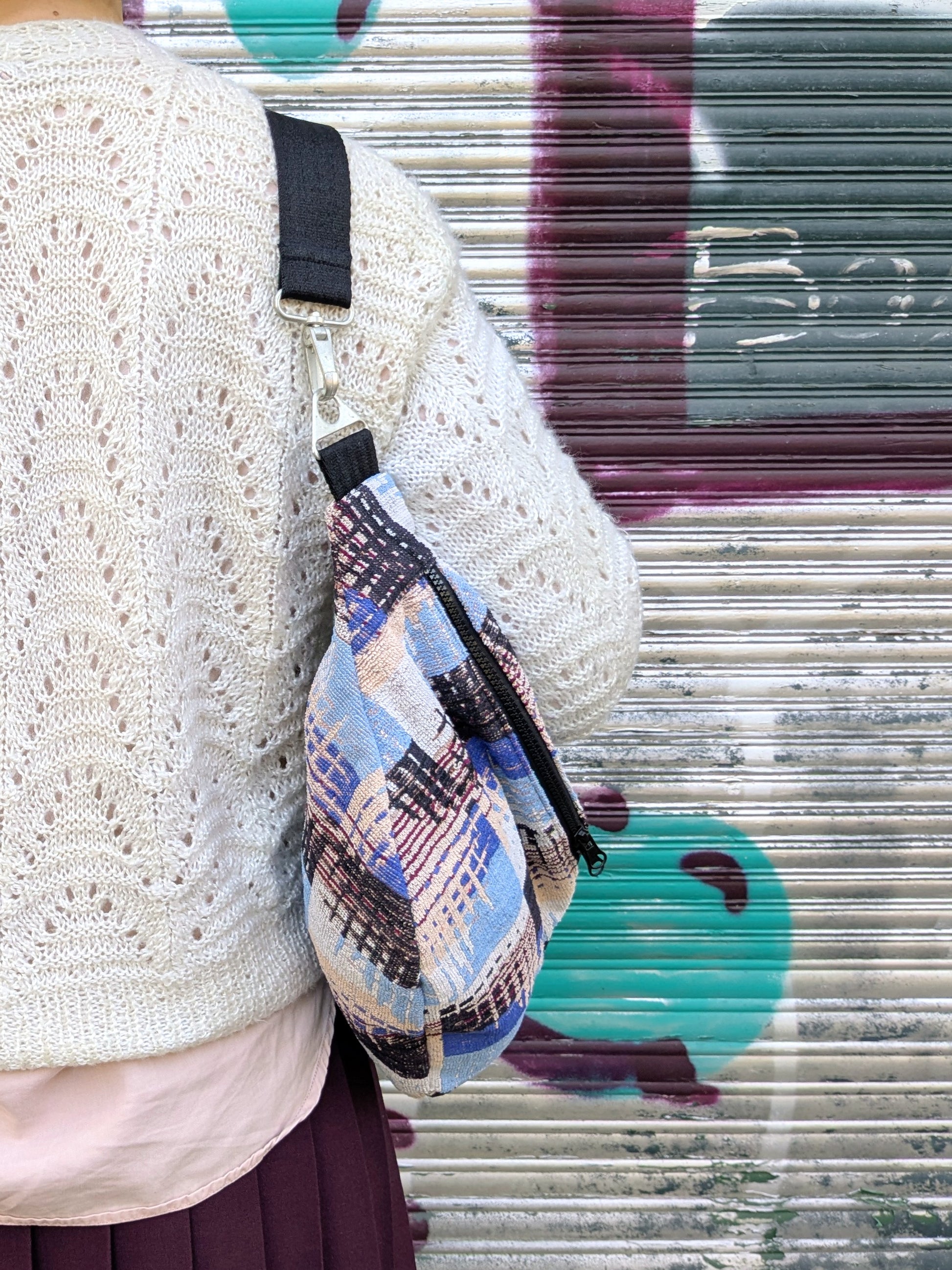Der von mir verwendete Frottee war ursprünglich ein hochwertiges Handtuch. Der Zweiwege Reißverschluss ermöglicht dir ein schnelles Öffnen und Schließen der Bauchtasche aus Stoff auf beiden Trageseiten. Im Inneren habe ich außerdem ein großes Einschubfach für Handy, Schlüssel oder Geldbörse mit den Maßen 18 cm x 12 cm (B x H) eingenäht. Eine kleine Schlaufe ermöglicht dir, deine Airpods oder Schlüssel mit Karabinerhaken zu sichern.