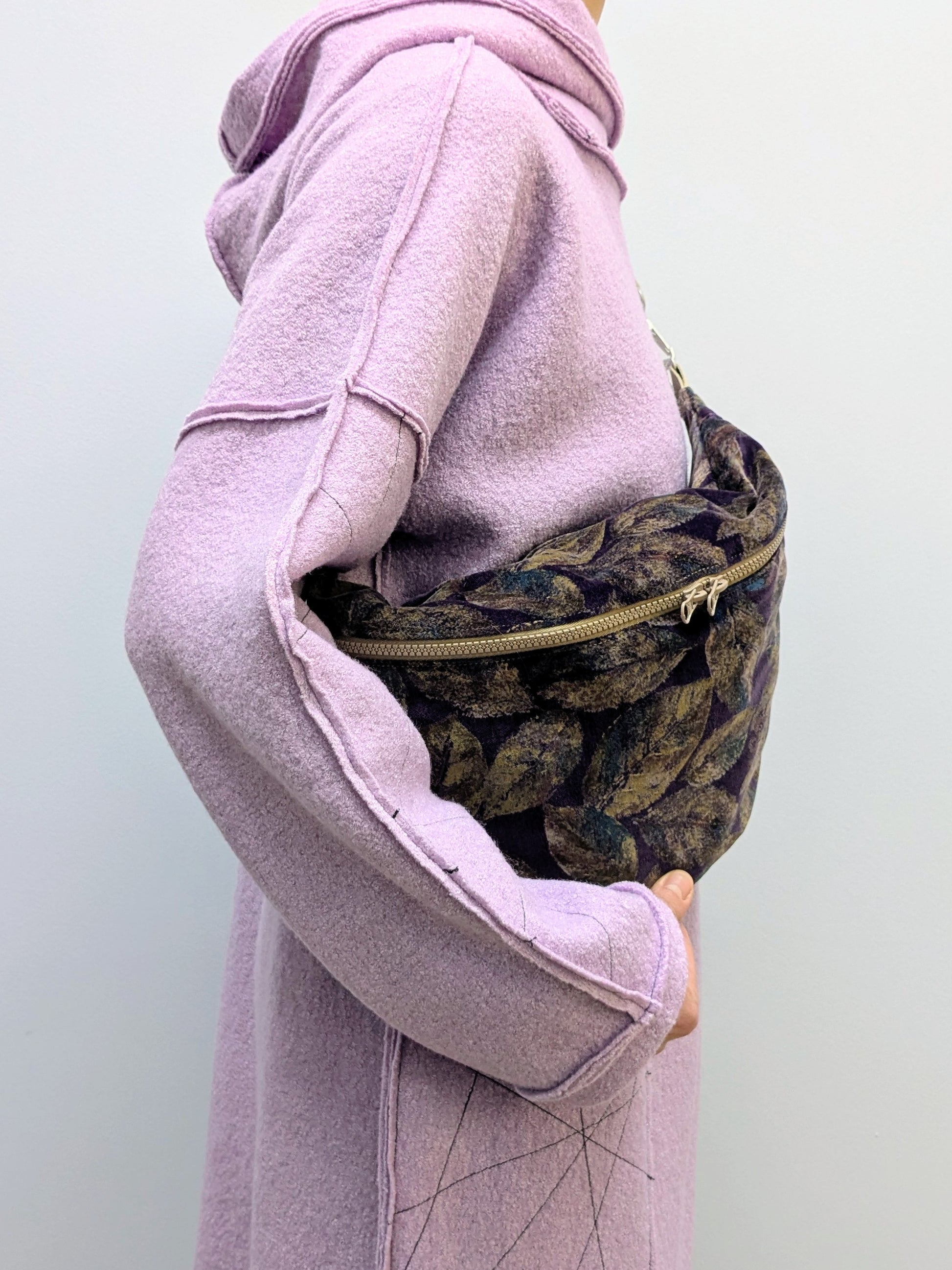 Crossbodybag XL Samt | Blätter | Violett