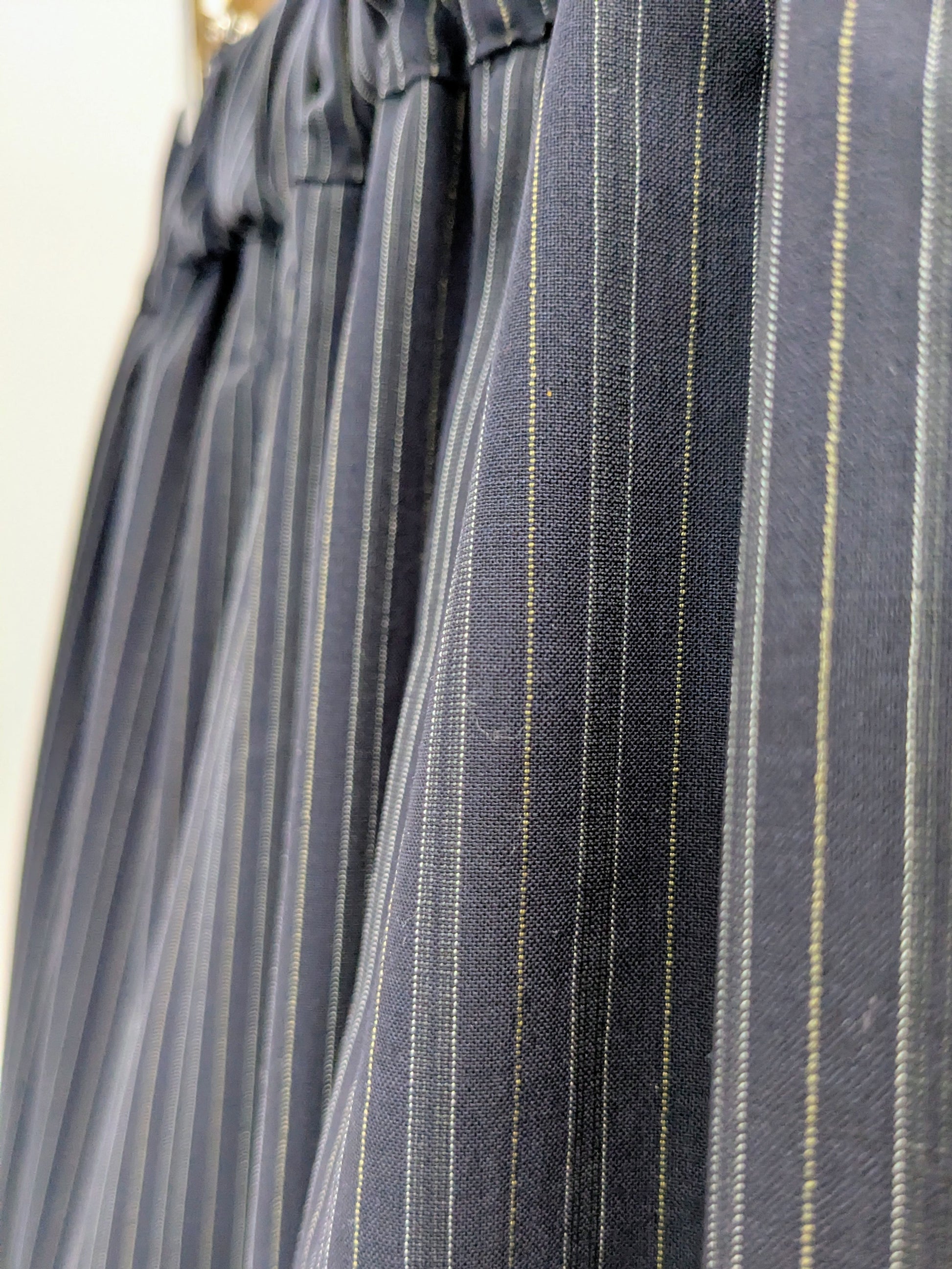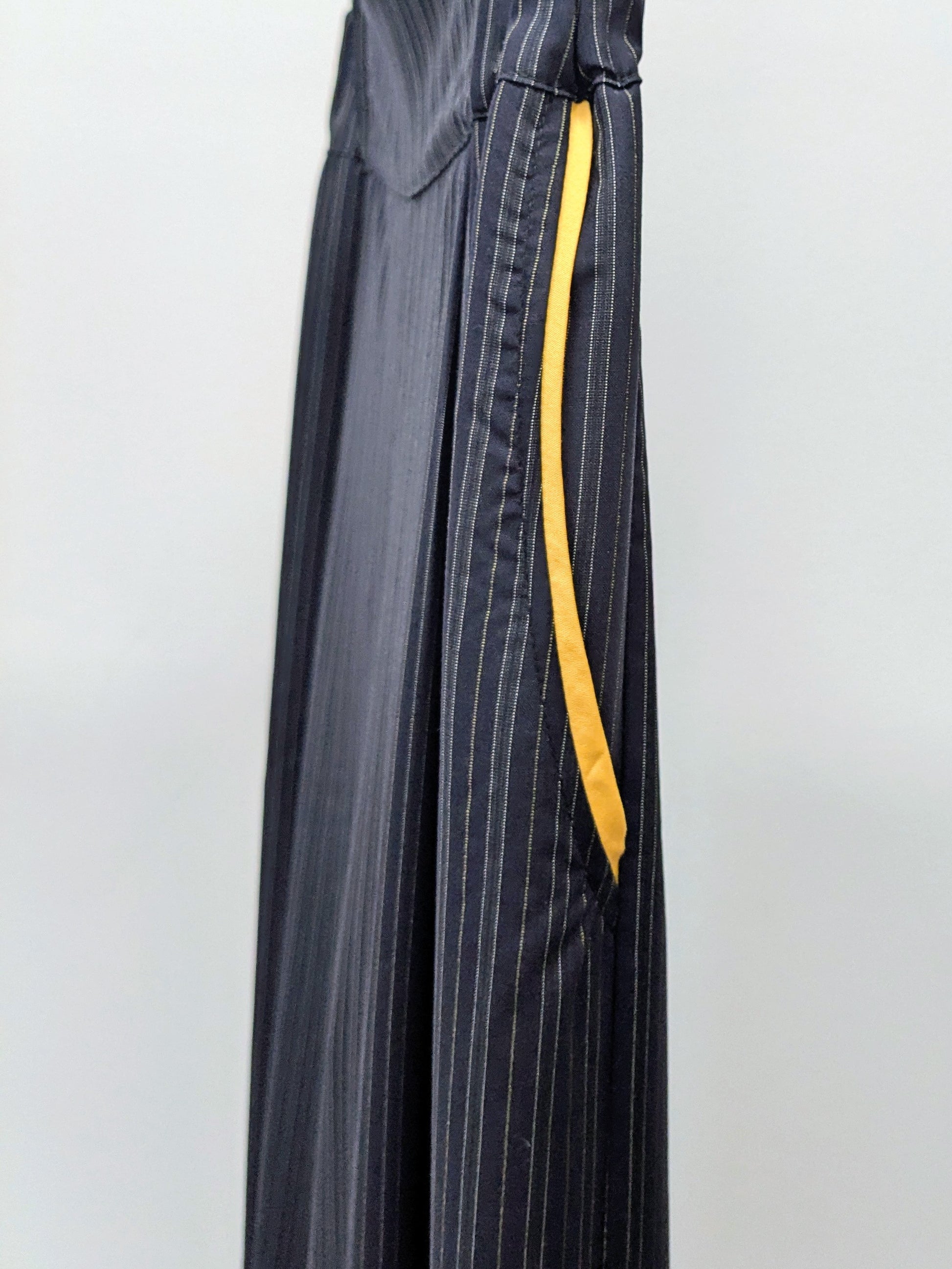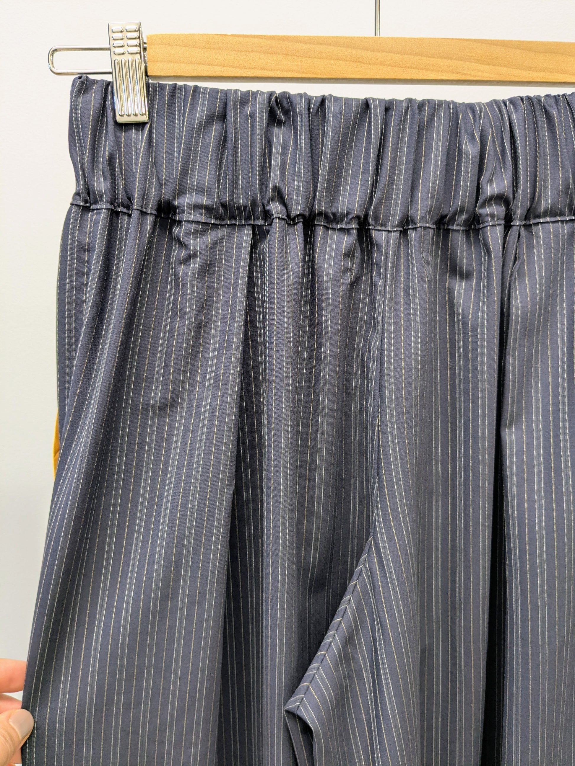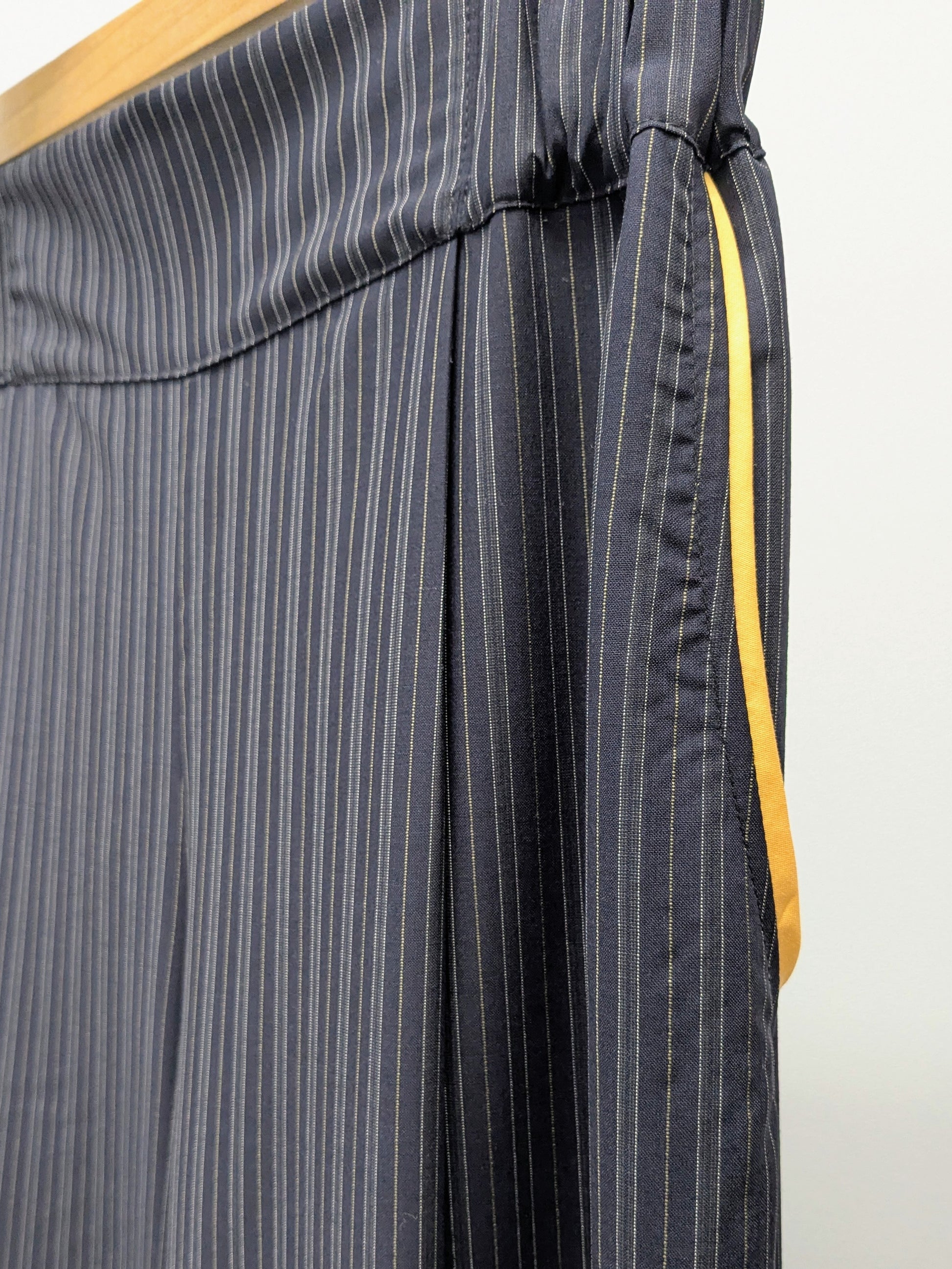 Entdecke die perfekte Mischung aus Stil und Komfort mit unserer Palazzohose in dunkelblauem Nadelstreifen aus feinster Schurwolle!