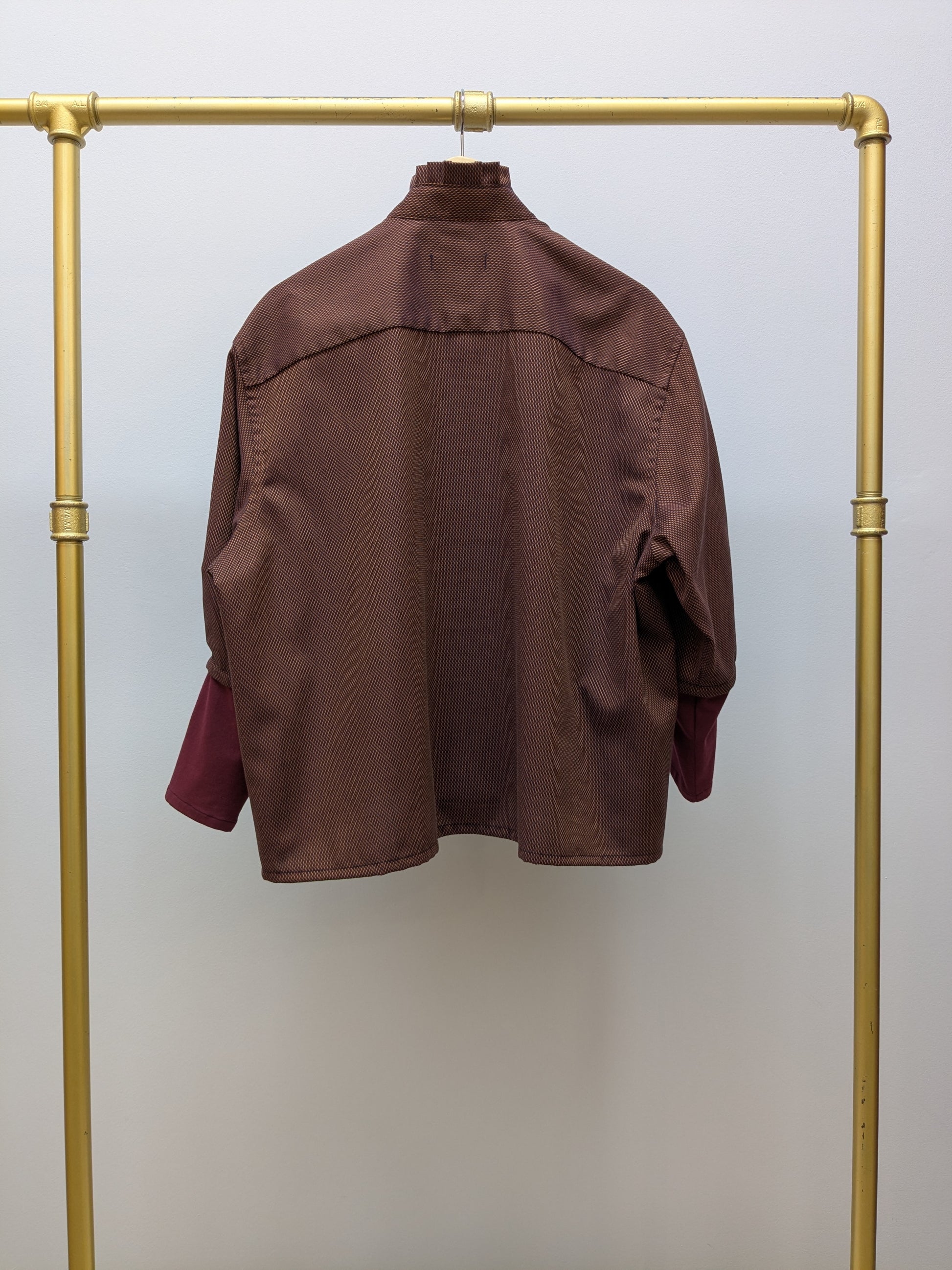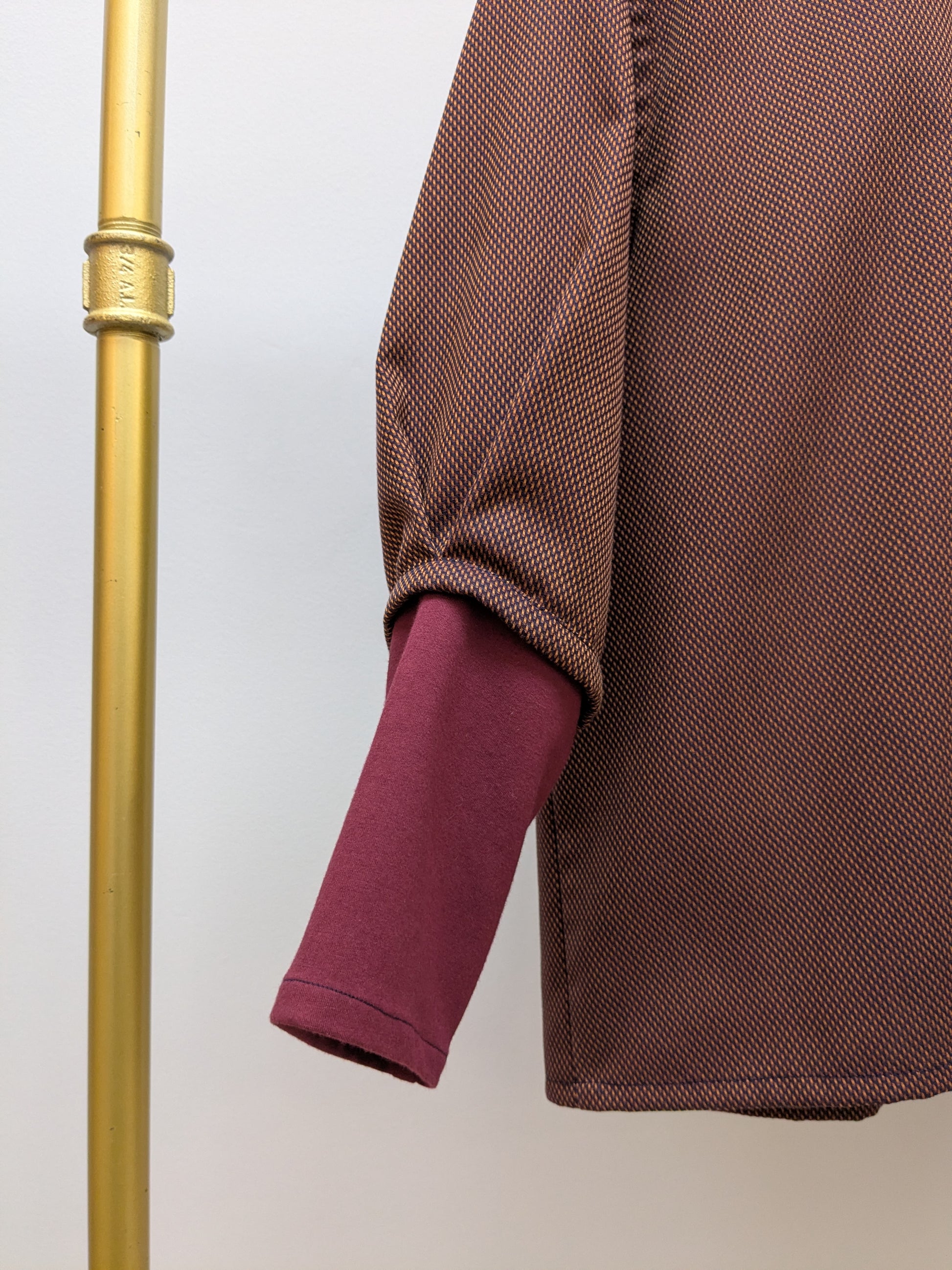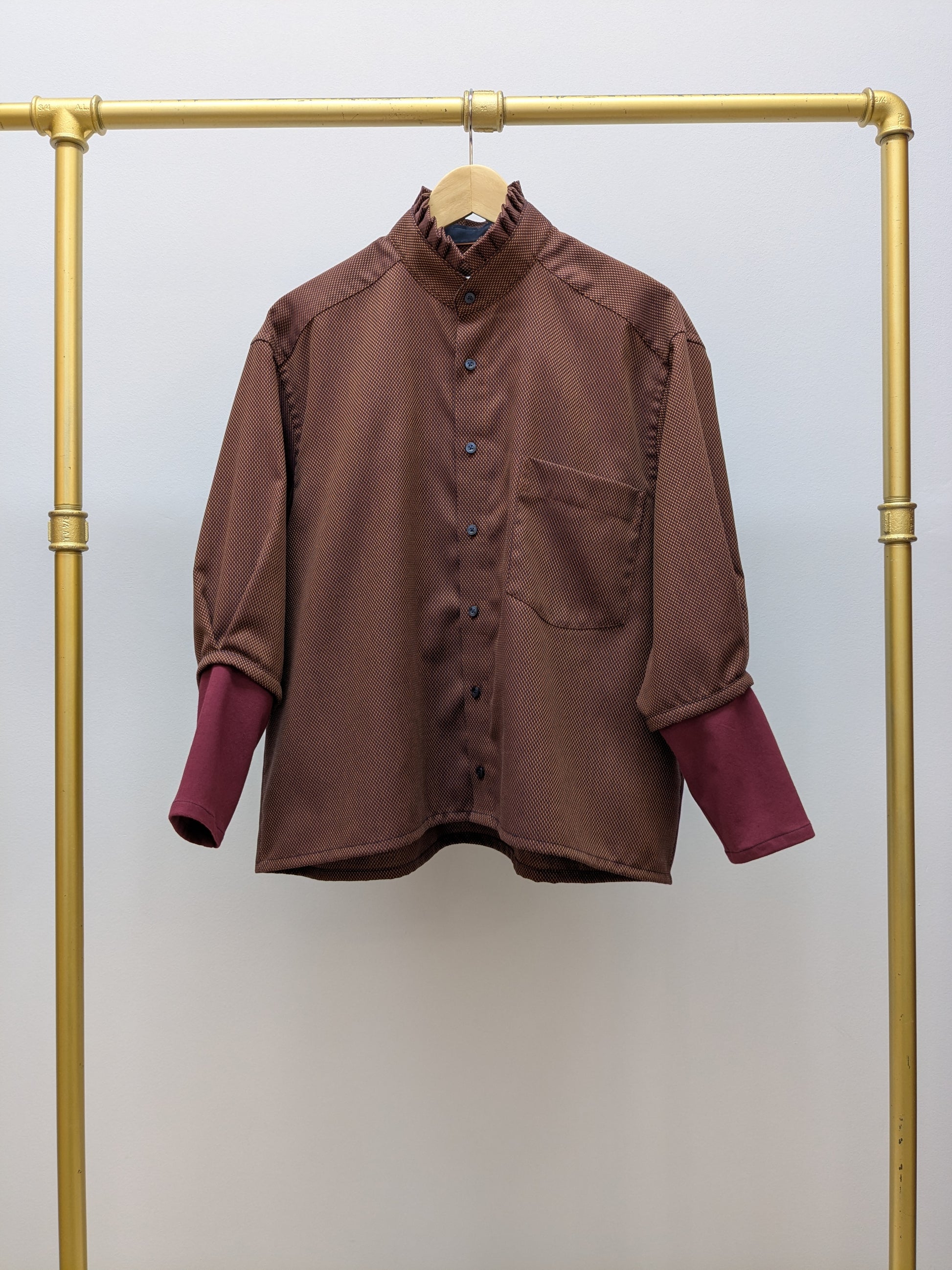 Diese feminine festliche Bluse wurde aus einem geretteten hochwertigem Herrenoberhemd neu interpretiert. Der maskuline Schnitt trifft auf verspielte Details: Ein Rüschenkragen verleiht der Bluse eine romantische Note, während die 3/4-Ärmel mit Kellerfalte und angesetzten Verlängerungen aus weichem Baumwolljersey für Komfort und Leichtigkeit sorgen.