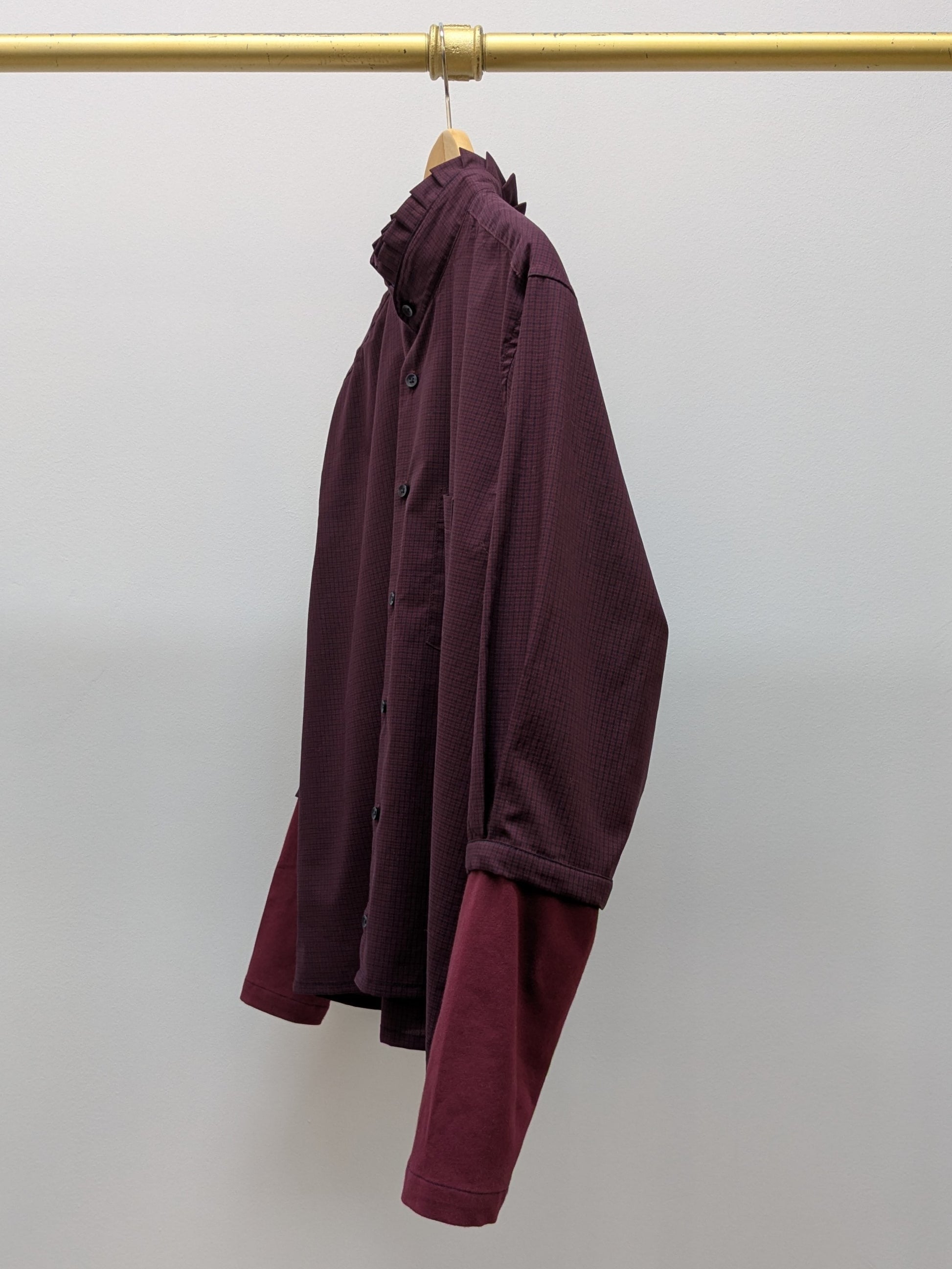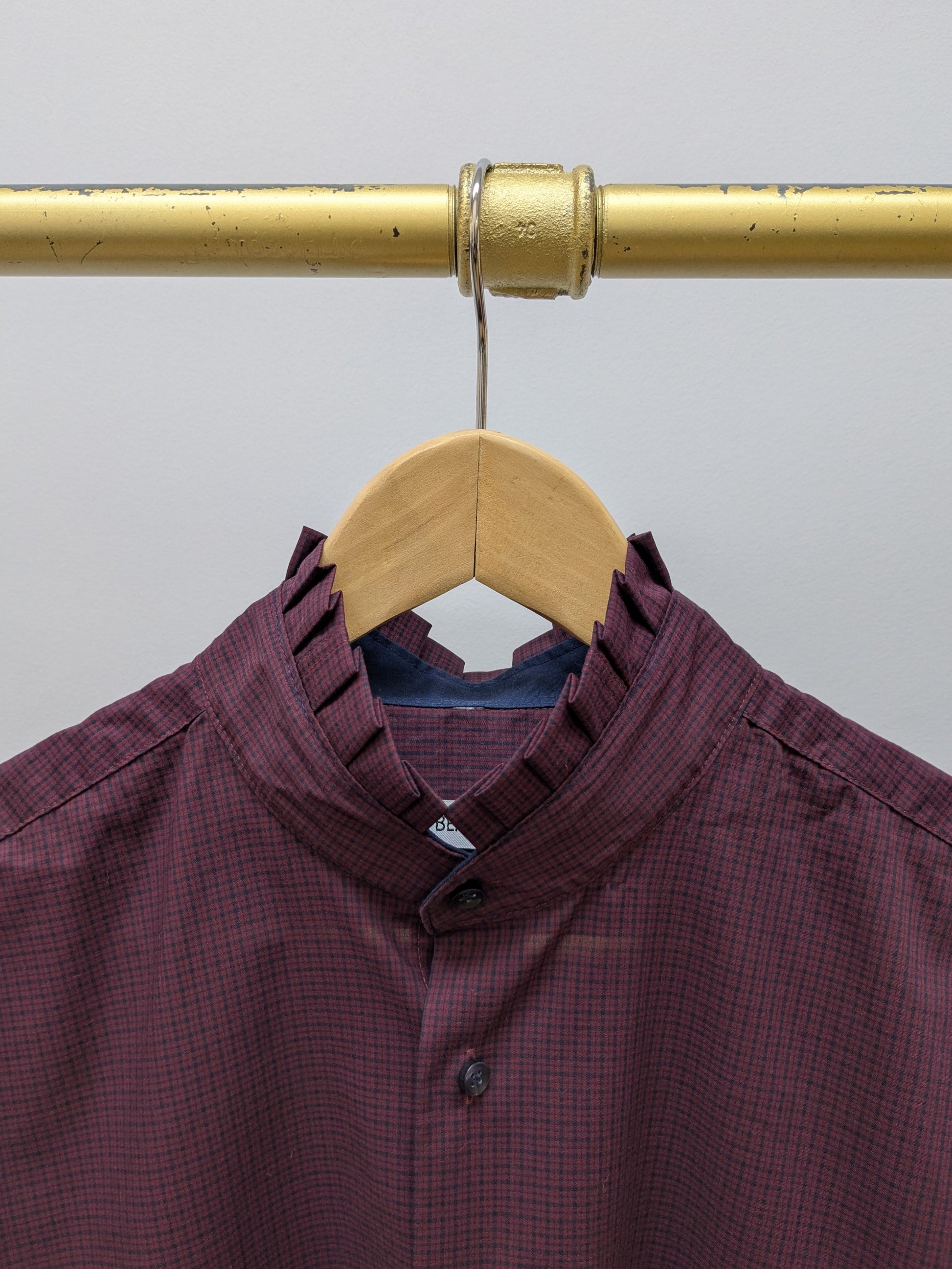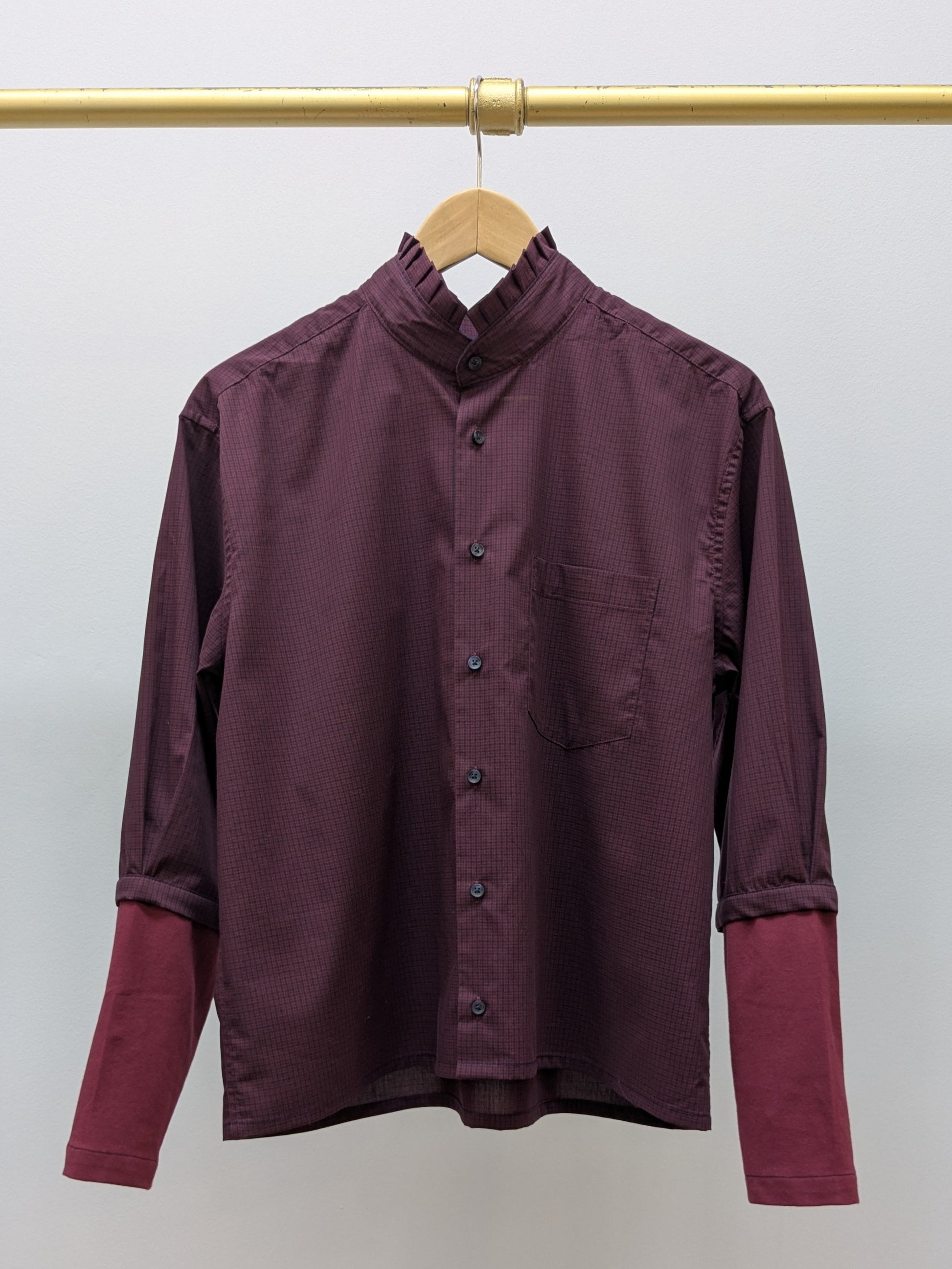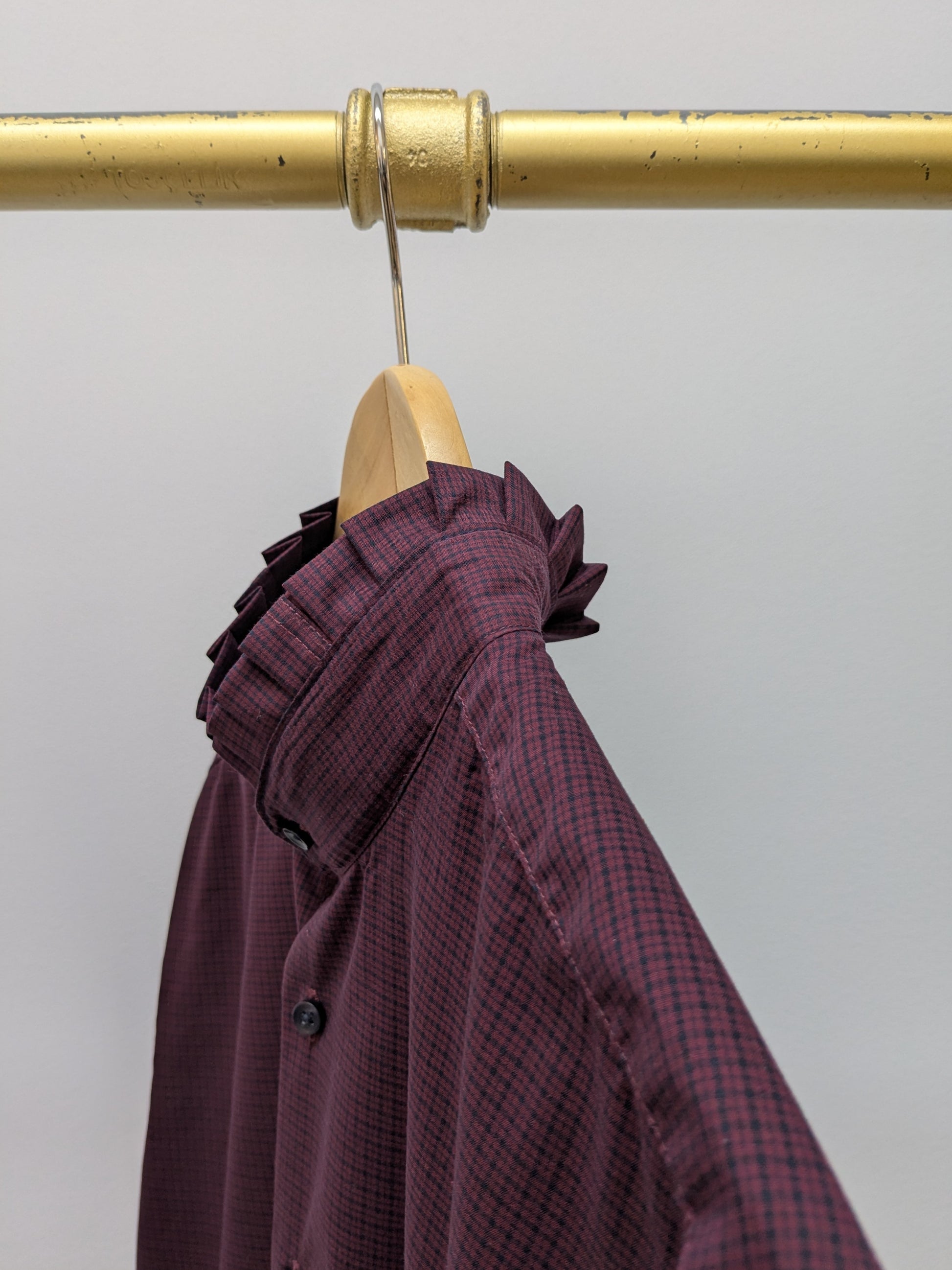 Rüschenbluse Karo | Weinrot | Unikat