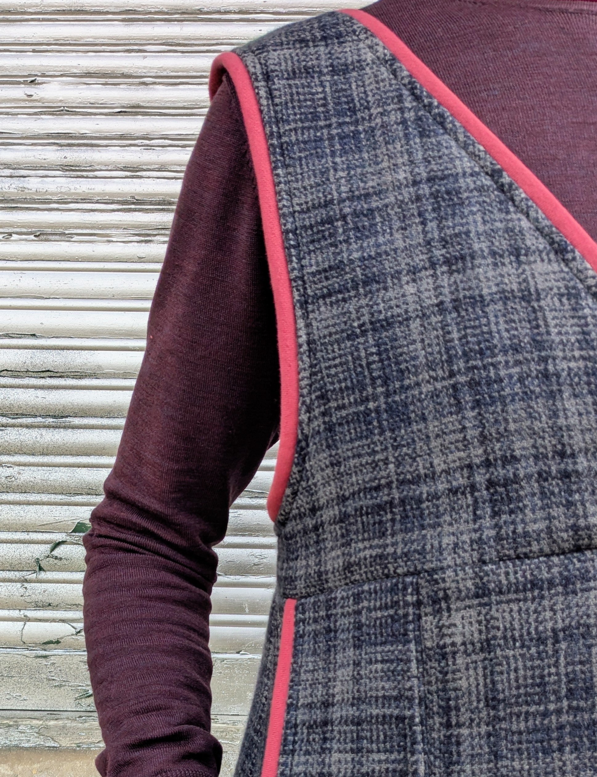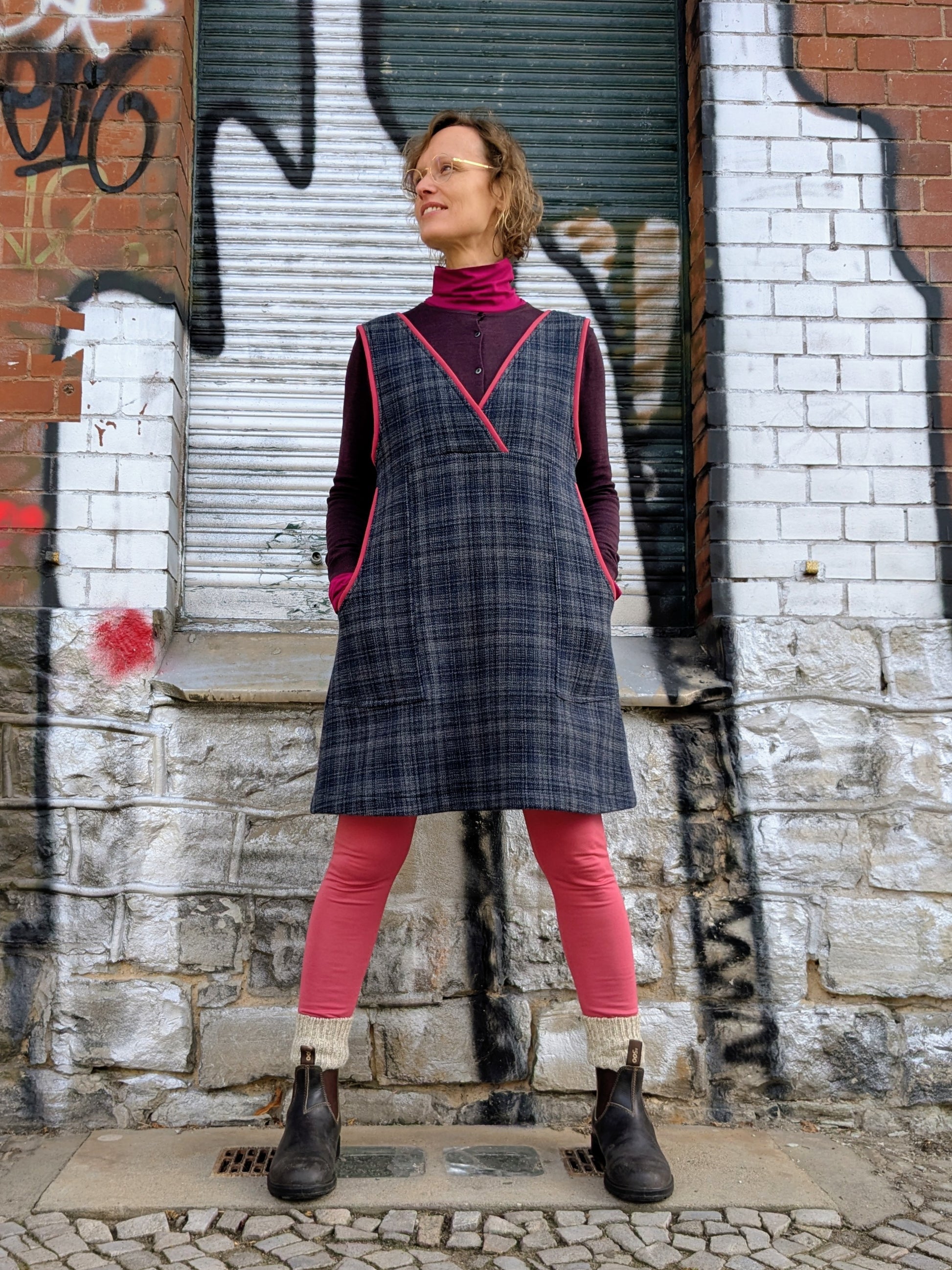 Entdecke unser mit Liebe handgenähtes Trägerkleid aus hochwertigem Deadstock-Wollstoff im klassischen Karomuster. Mit den auffälligen aufgesetzten Taschen bietet dieses ausgestellte Kleid nicht nur ein modisches Statement, sondern auch praktischen Stauraum im Alltag.