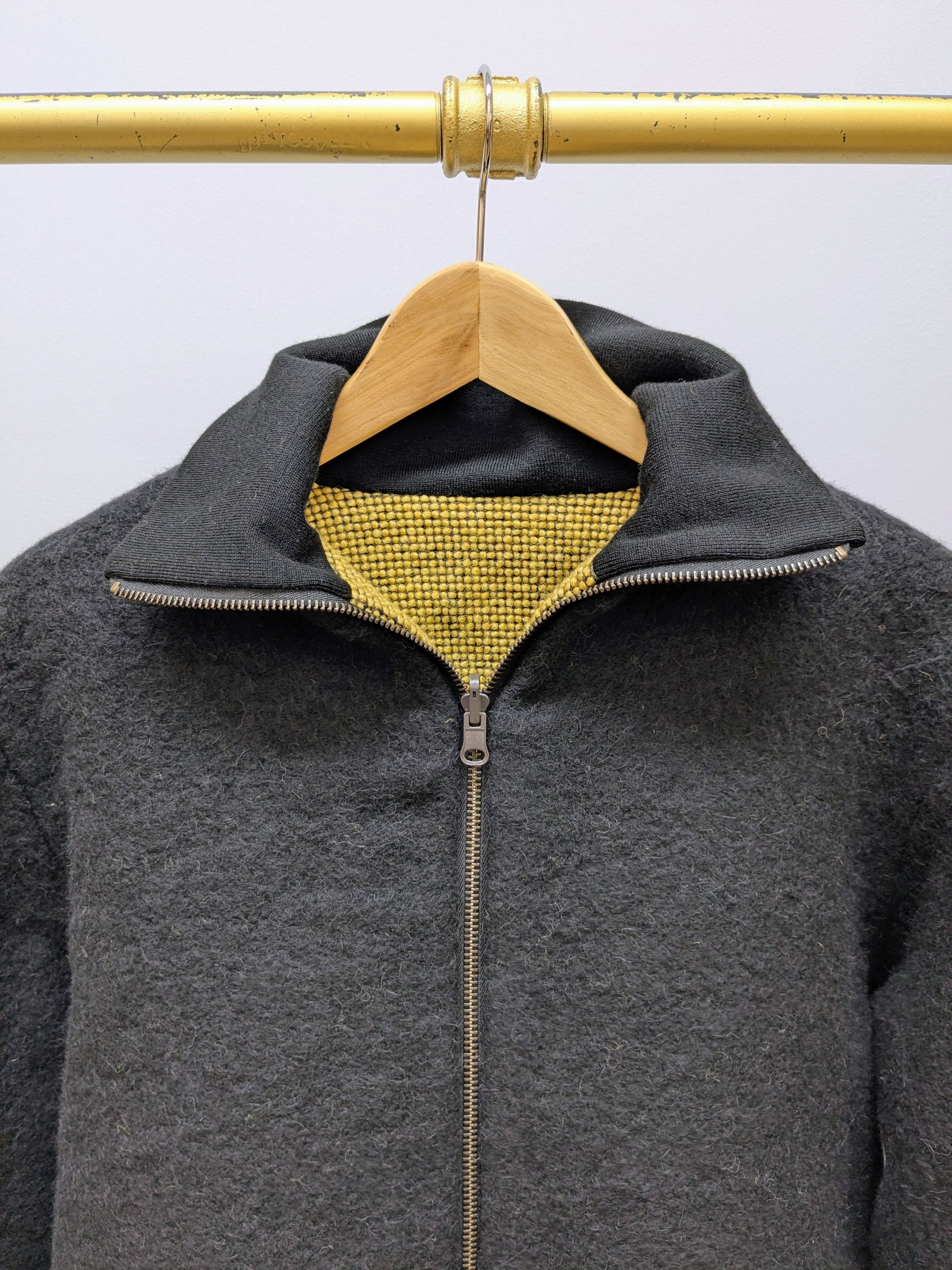 Entdecke jetzt unseren exklusiven Wendeblouson – einzigartig gefertigt aus hochwertiger Deadstock-Wolle und sorgfältig gerettetem Polsterstoff. Dieses besondere Upcycling-Mode-Highlight vereint individuellen Stil mit nachhaltigem Design. Die Jacke ist beidseitig tragbar und bietet mit ihren aufgesetzten Taschen und dem markanten Fliegerkragen einen lässigen, urbanen Look. Der praktische Reißverschluss sorgt für modernes Handling, während die Auswahl der Stoffe jedes Stück zum Unikat macht.